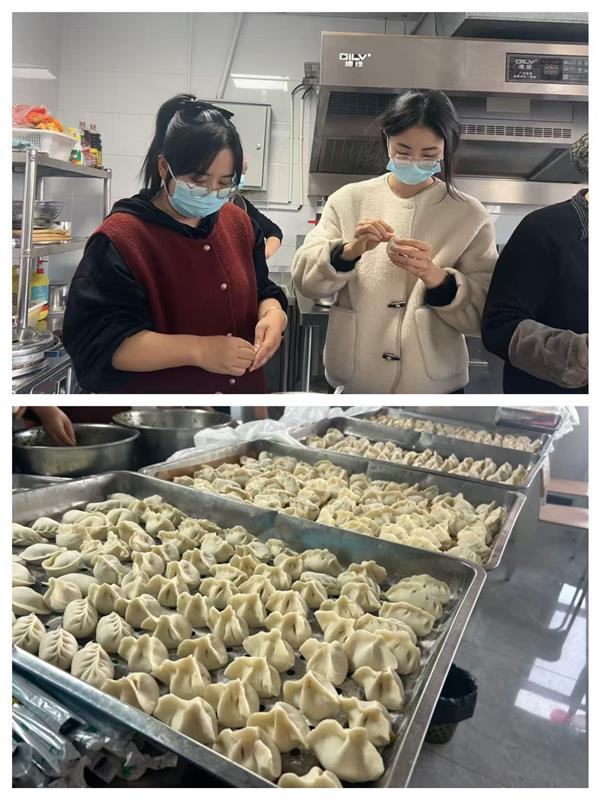 集團(tuán)領(lǐng)導(dǎo)班子成員也一同加入到包餃子的行列中,一邊包餃子一邊與年輕員工分享冬至習(xí)俗:“冬至不端餃子碗,凍掉耳朵沒(méi)人管。今天咱們多包點(diǎn),讓每個(gè)人都吃得暖暖和和!”