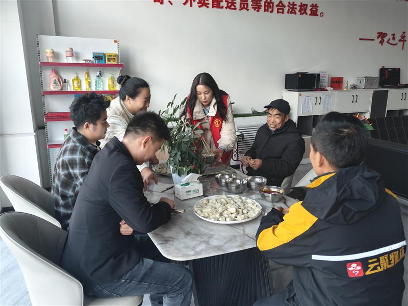 冬至陽生,歲回律轉(zhuǎn)。在冬至佳節(jié)來臨之際,為切實(shí)做好戶外勞動(dòng)者和新業(yè)態(tài)群體的關(guān)愛服務(wù)工作,讓他們?cè)诤懈惺艿近h和工會(huì)組織的溫暖關(guān)懷。12月19日,平?jīng)鍪姓衽d運(yùn)輸行業(yè)工會(huì)聯(lián)合會(huì)依托戶外勞動(dòng)者驛站,開展了“冬至送溫暖·驛站有擔(dān)當(dāng)”關(guān)愛新業(yè)態(tài)群體慰問活動(dòng)。活動(dòng)聚焦貨車司機(jī)、網(wǎng)約車司機(jī)、快遞員、外賣配送員等新業(yè)態(tài)勞動(dòng)者群體,通過邀請(qǐng)包餃子、話冬至、吃餃子等形式,為辛勤奔波在一線的戶外勞動(dòng)者送上冬至的問候與祝福。